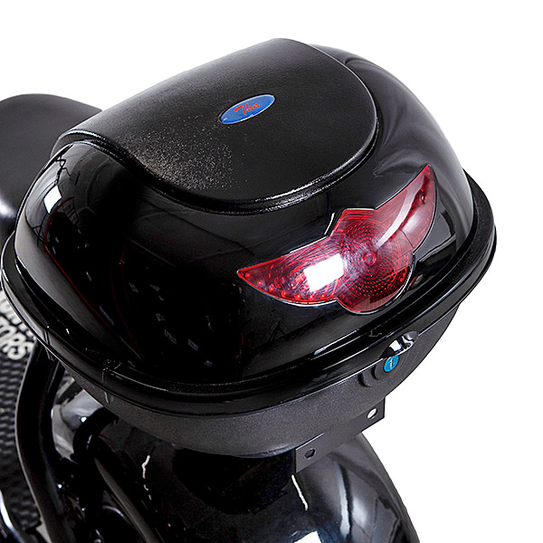 Täydennä Kontio Motors Kruiser -sähköajoneuvosi käytännöllisyys mustalla takaboksilla! Tämä hieman sirompi versio isosta takaboksista tarjoaa kätevän ja turvallisen säilytystilan tavaroillesi ilman, että se vie liikaa tilaa ajoneuvostasi.