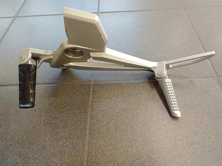 Jalkatappirunko vasen, sisältää takajalkatapin ja kuskin jalkatapin vasemmalle puolelle. Alkuperäisosa Kontio Motors SuperMotoon.