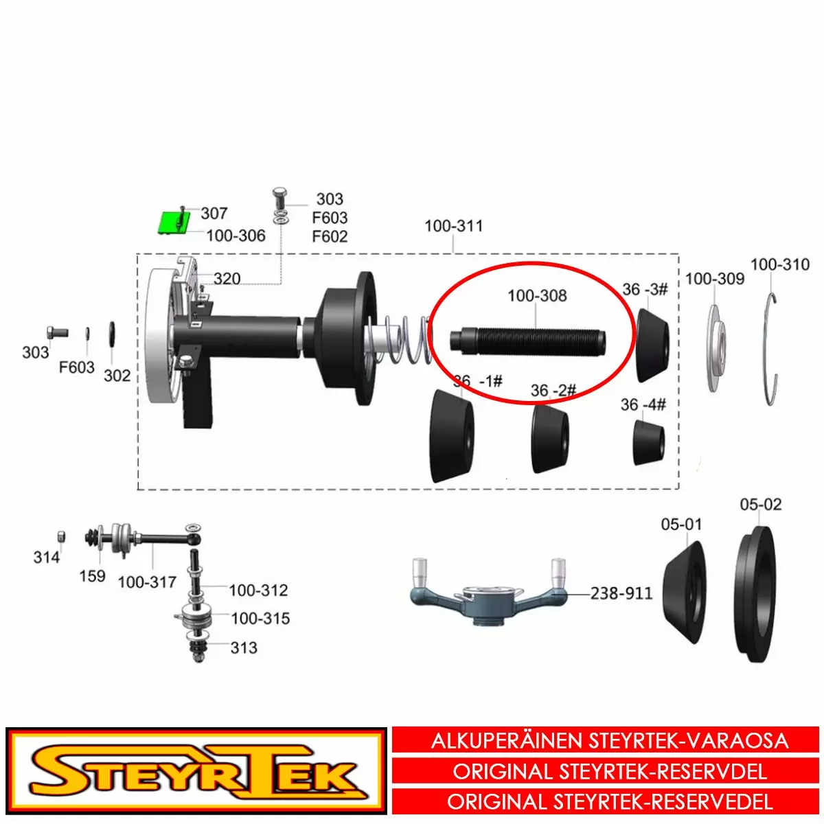 Tämä osa käy valitsemaanne koneeseen. Sama osa käy useaan SteyrTek koneeseen, joten räjäytyskuva ei välttämättä ole samasta koneesta.