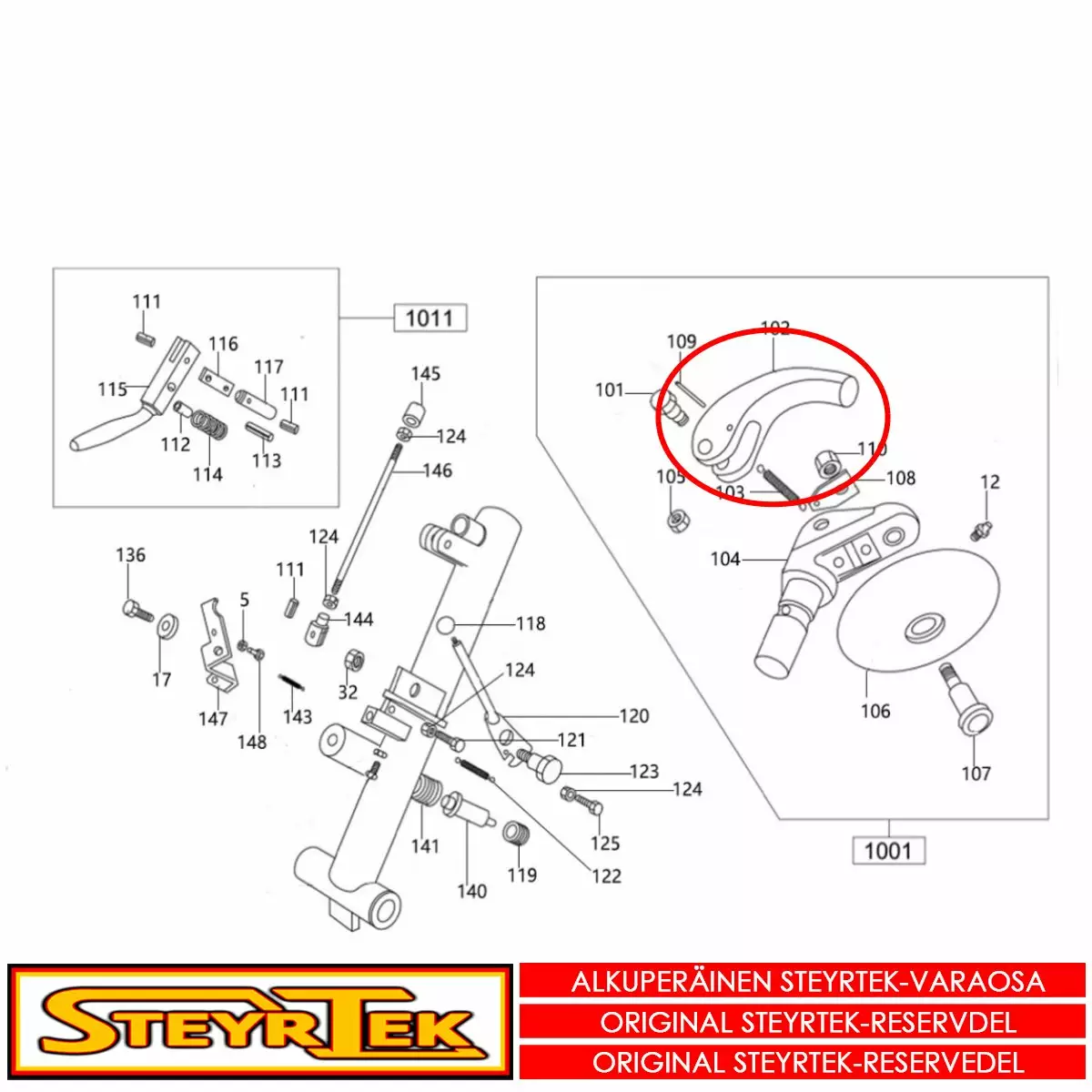 Tämä osa käy valitsemaanne koneeseen. Sama osa käy useaan SteyrTek koneeseen, joten räjäytyskuva ei välttämättä ole samasta koneesta.