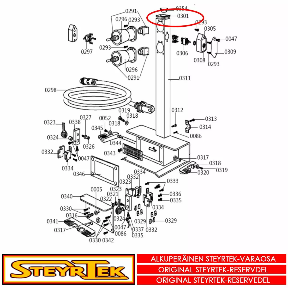 Tämä osa käy valitsemaanne koneeseen. Sama osa käy useaan SteyrTek koneeseen, joten räjäytyskuva ei välttämättä ole samasta koneesta.