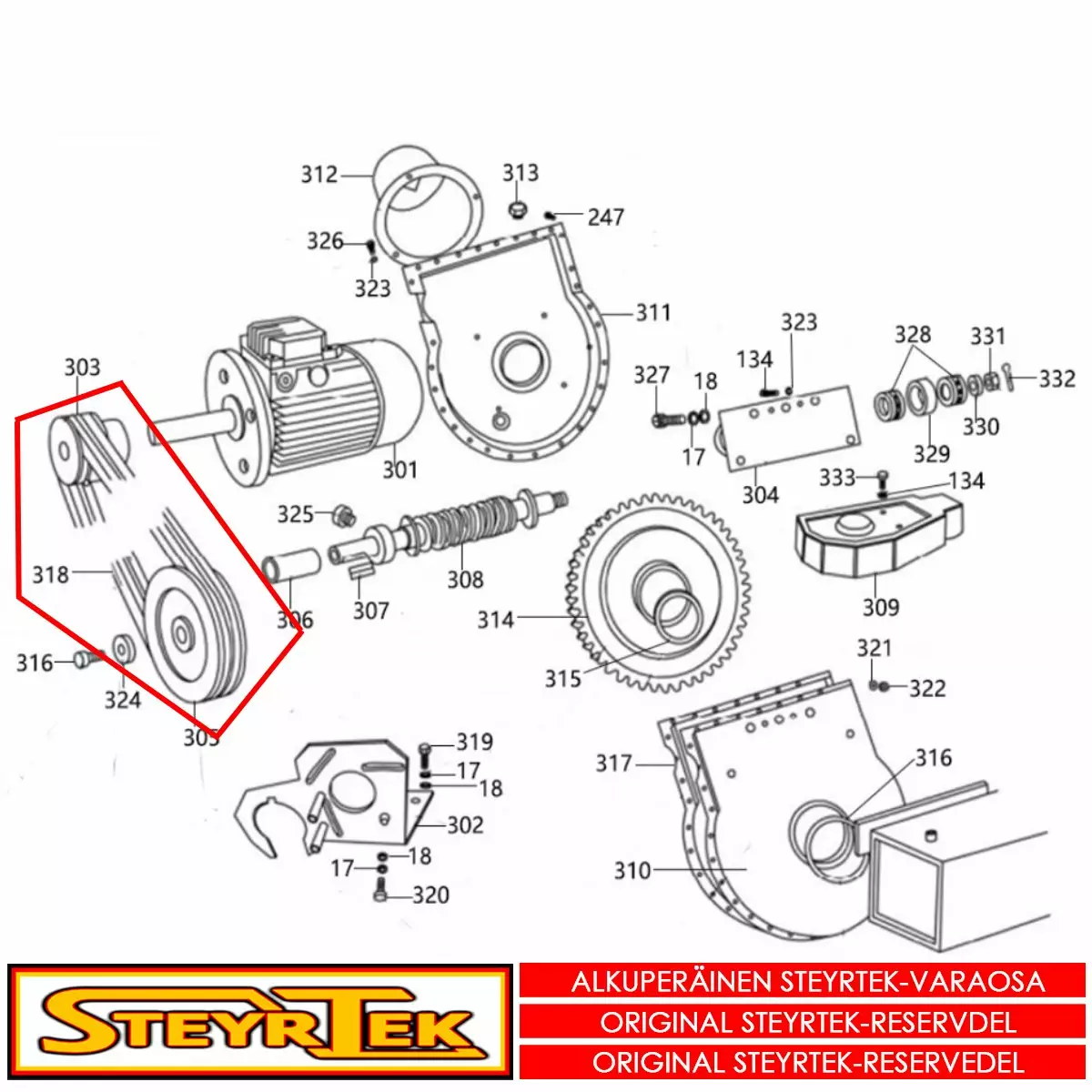 Tämä osa käy valitsemaanne koneeseen. Sama osa käy useaan SteyrTek koneeseen, joten räjäytyskuva ei välttämättä ole samasta koneesta.