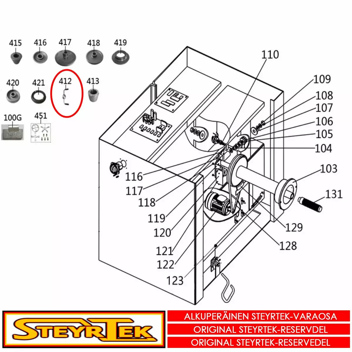 Tämä osa käy valitsemaanne koneeseen. Sama osa käy useaan SteyrTek koneeseen, joten räjäytyskuva ei välttämättä ole samasta koneesta.