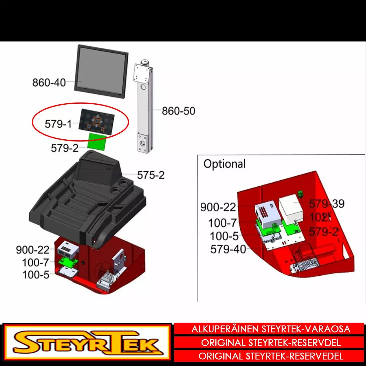 Tämä osa käy valitsemaanne koneeseen. Sama osa käy useaan SteyrTek koneeseen, joten räjäytyskuva ei välttämättä ole samasta koneesta.