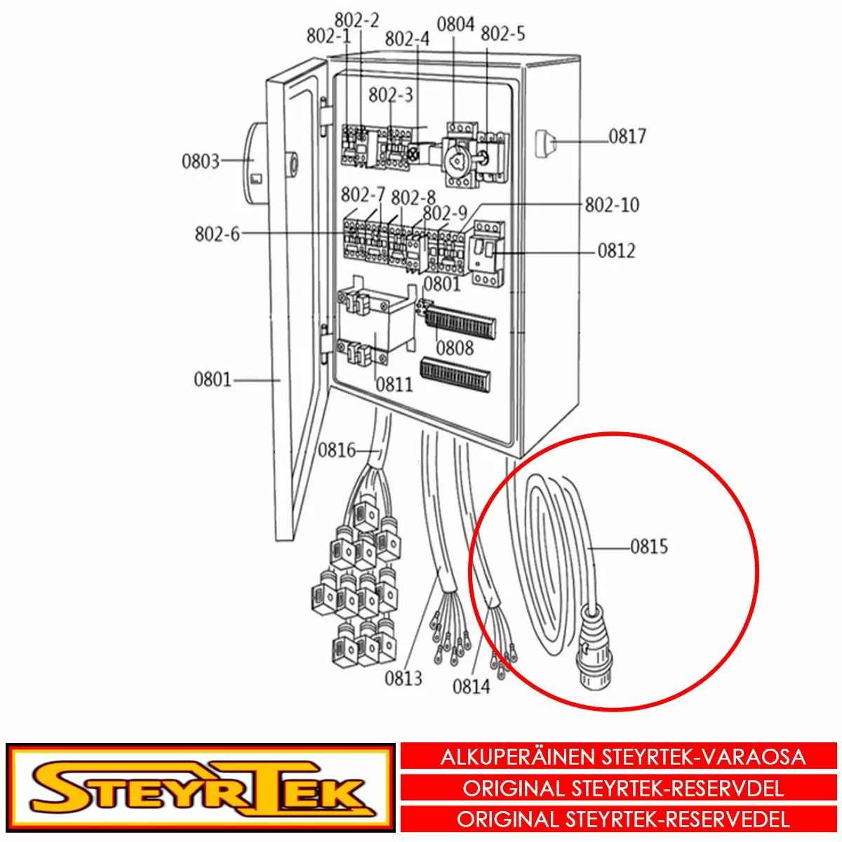 SteyrTek rengaskoneen pääjohto liittimillä-osa. Tämä osa käy valitsemaanne koneeseen. Sama osa käy useaan SteyrTek koneeseen, joten räjäytyskuva ei välttämättä ole samasta koneesta.... Lue lisää