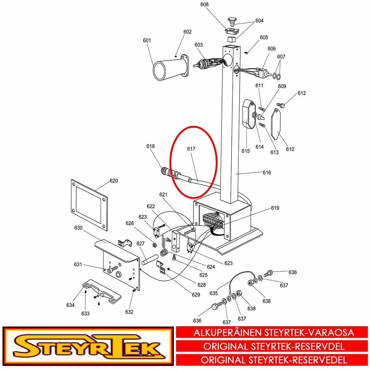 Tämä osa käy valitsemaanne koneeseen. Sama osa käy useaan SteyrTek koneeseen, joten räjäytyskuva ei välttämättä ole samasta koneesta.