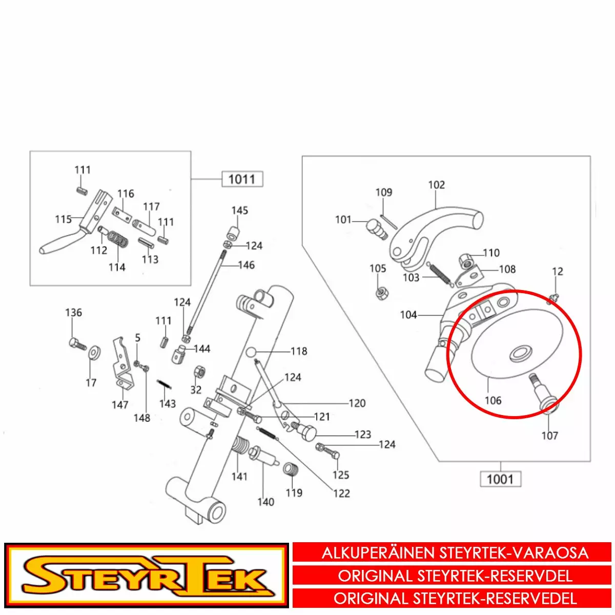 Tämä osa käy valitsemaanne koneeseen. Sama osa käy useaan SteyrTek koneeseen, joten räjäytyskuva ei välttämättä ole samasta koneesta.