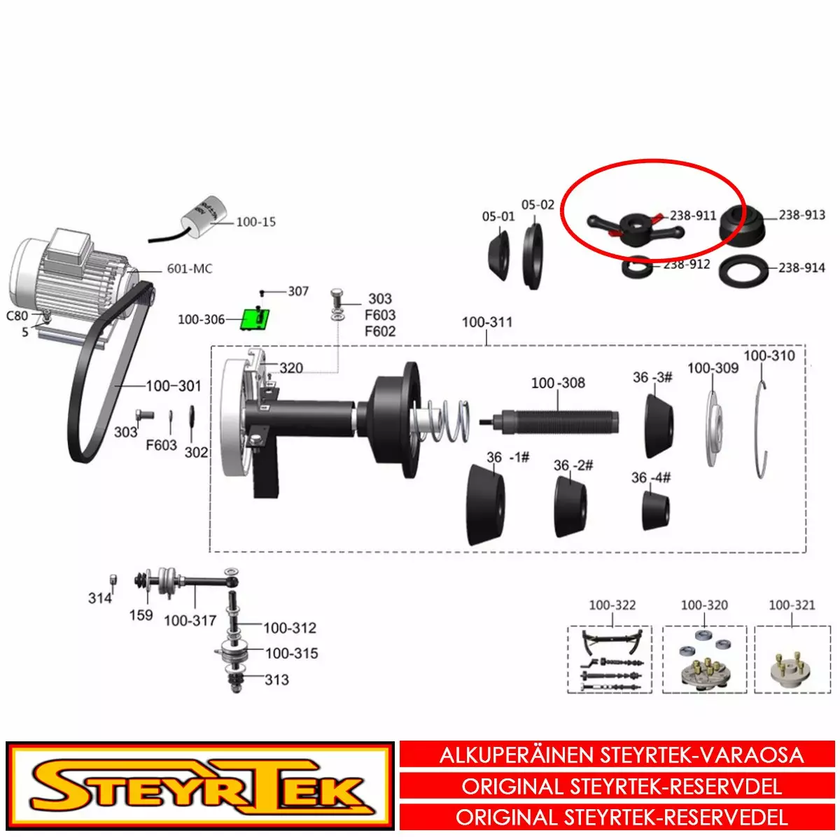 Tämä osa käy valitsemaanne koneeseen. Sama osa käy useaan SteyrTek koneeseen, joten räjäytyskuva ei välttämättä ole samasta koneesta.