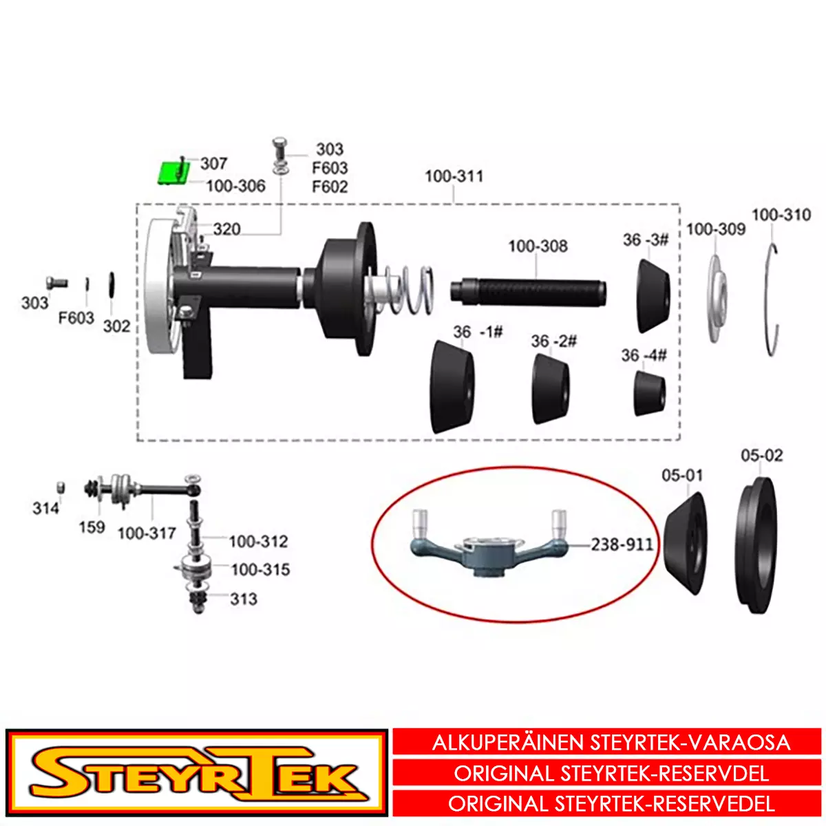 Tämä osa käy valitsemaanne koneeseen. Sama osa käy useaan SteyrTek koneeseen, joten räjäytyskuva ei välttämättä ole samasta koneesta.