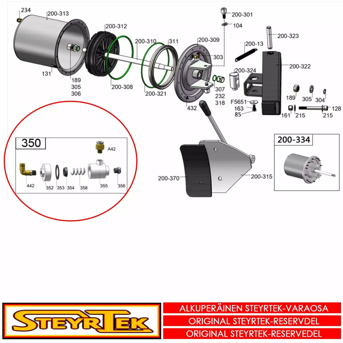 Tämä osa käy valitsemaanne koneeseen. Sama osa käy useaan SteyrTek koneeseen, joten räjäytyskuva ei välttämättä ole samasta koneesta.