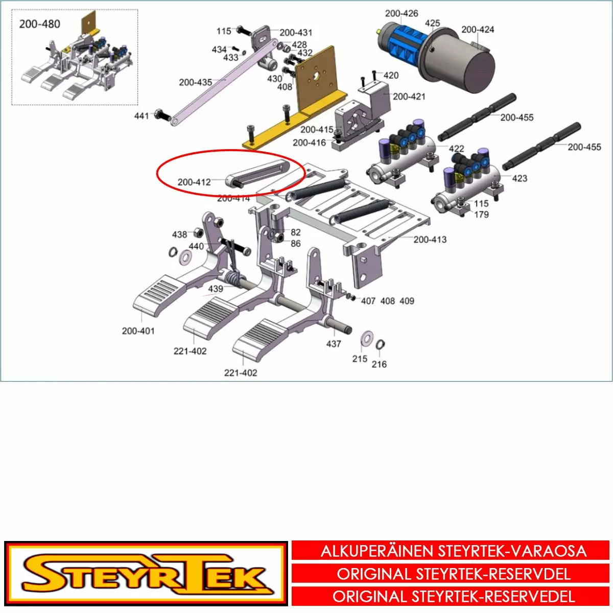 Tämä osa käy valitsemaanne koneeseen. Sama osa käy useaan SteyrTek koneeseen, joten räjäytyskuva ei välttämättä ole samasta koneesta.