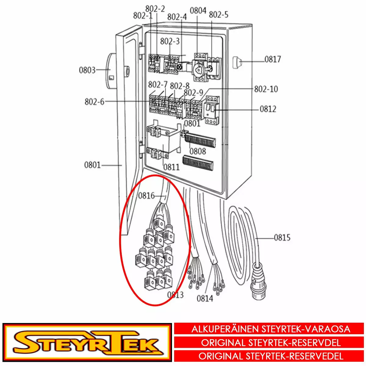 Tämä osa käy valitsemaanne koneeseen. Sama osa käy useaan SteyrTek koneeseen, joten räjäytyskuva ei välttämättä ole samasta koneesta.