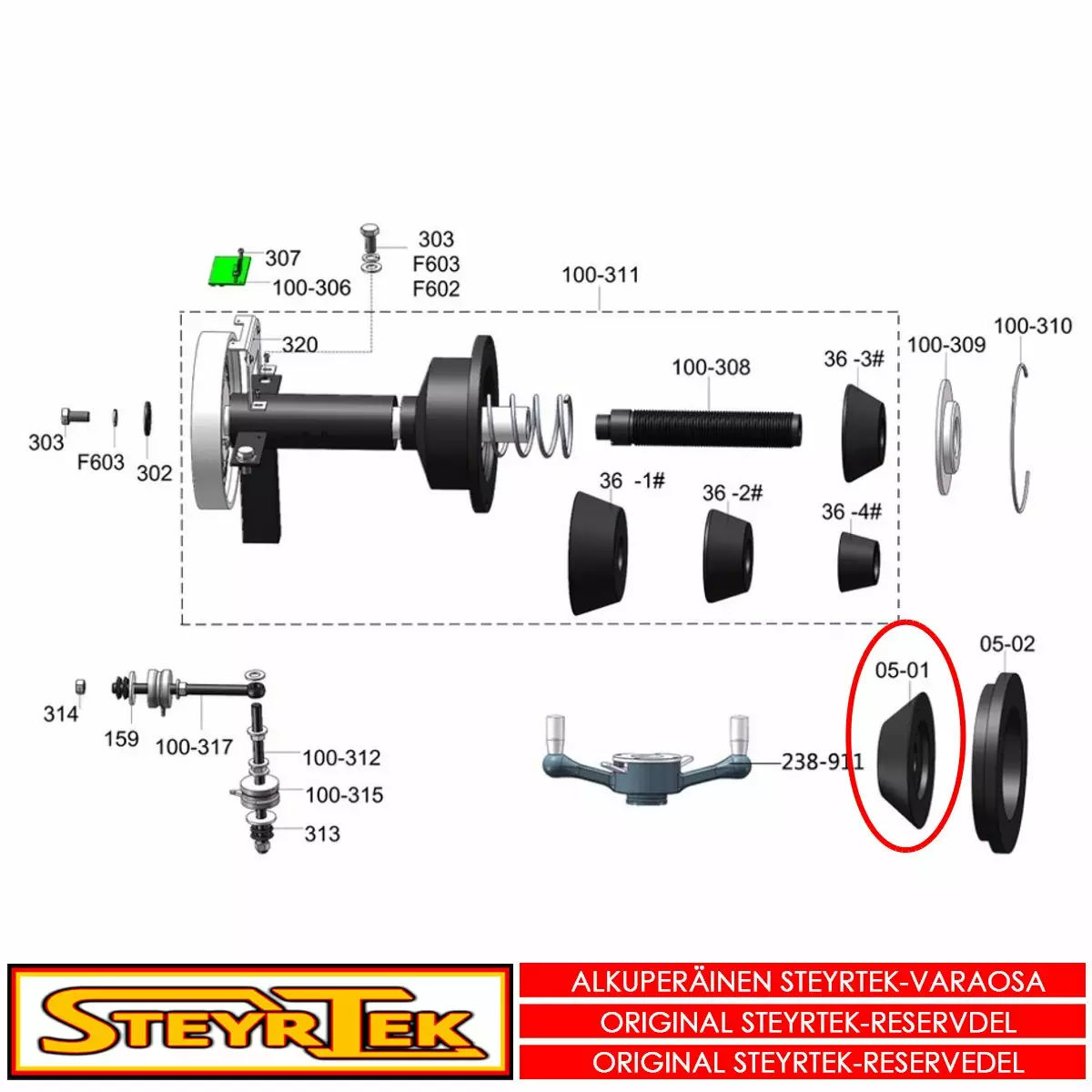 Tämä osa käy valitsemaanne koneeseen. Sama osa käy useaan SteyrTek koneeseen, joten räjäytyskuva ei välttämättä ole samasta koneesta.