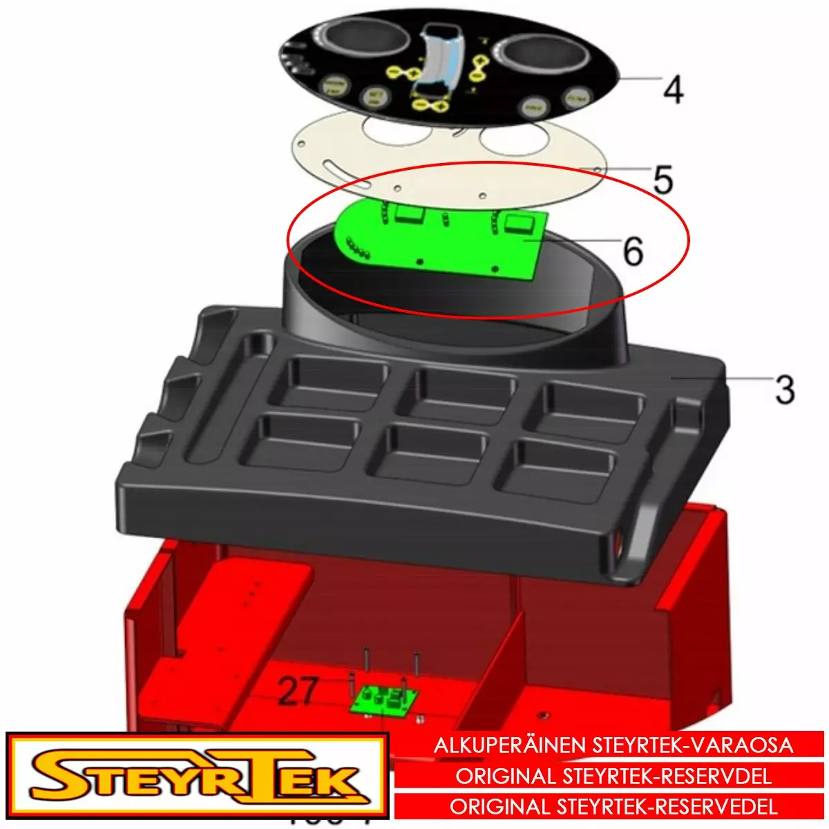 Tämä osa käy valitsemaanne koneeseen. Sama osa käy useaan SteyrTek koneeseen, joten räjäytyskuva ei välttämättä ole samasta koneesta.