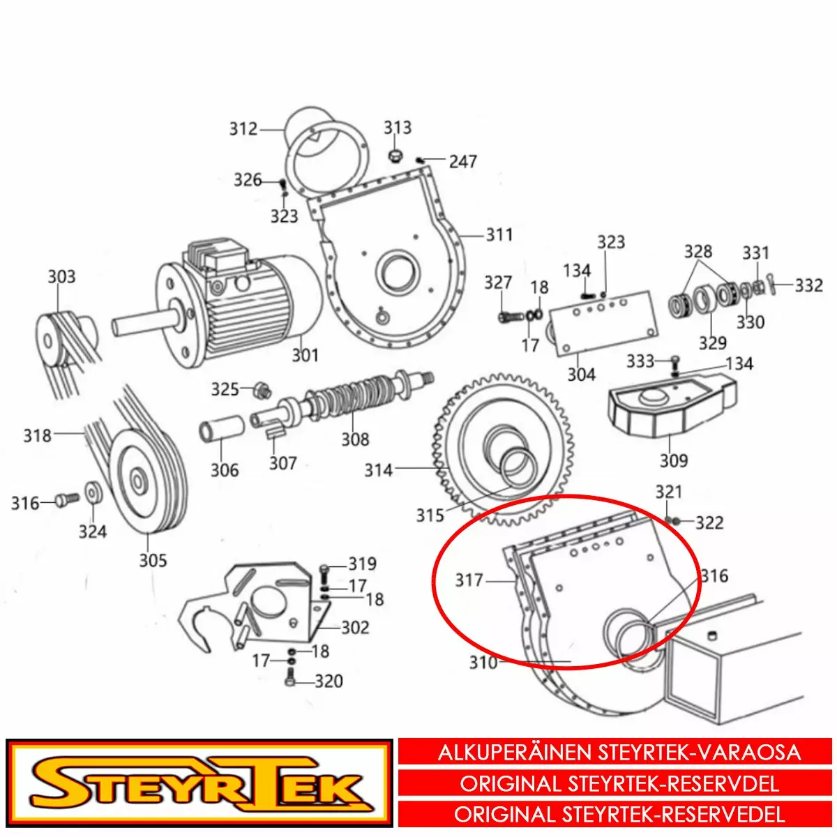 Tämä osa käy valitsemaanne koneeseen. Sama osa käy useaan SteyrTek koneeseen, joten räjäytyskuva ei välttämättä ole samasta koneesta.