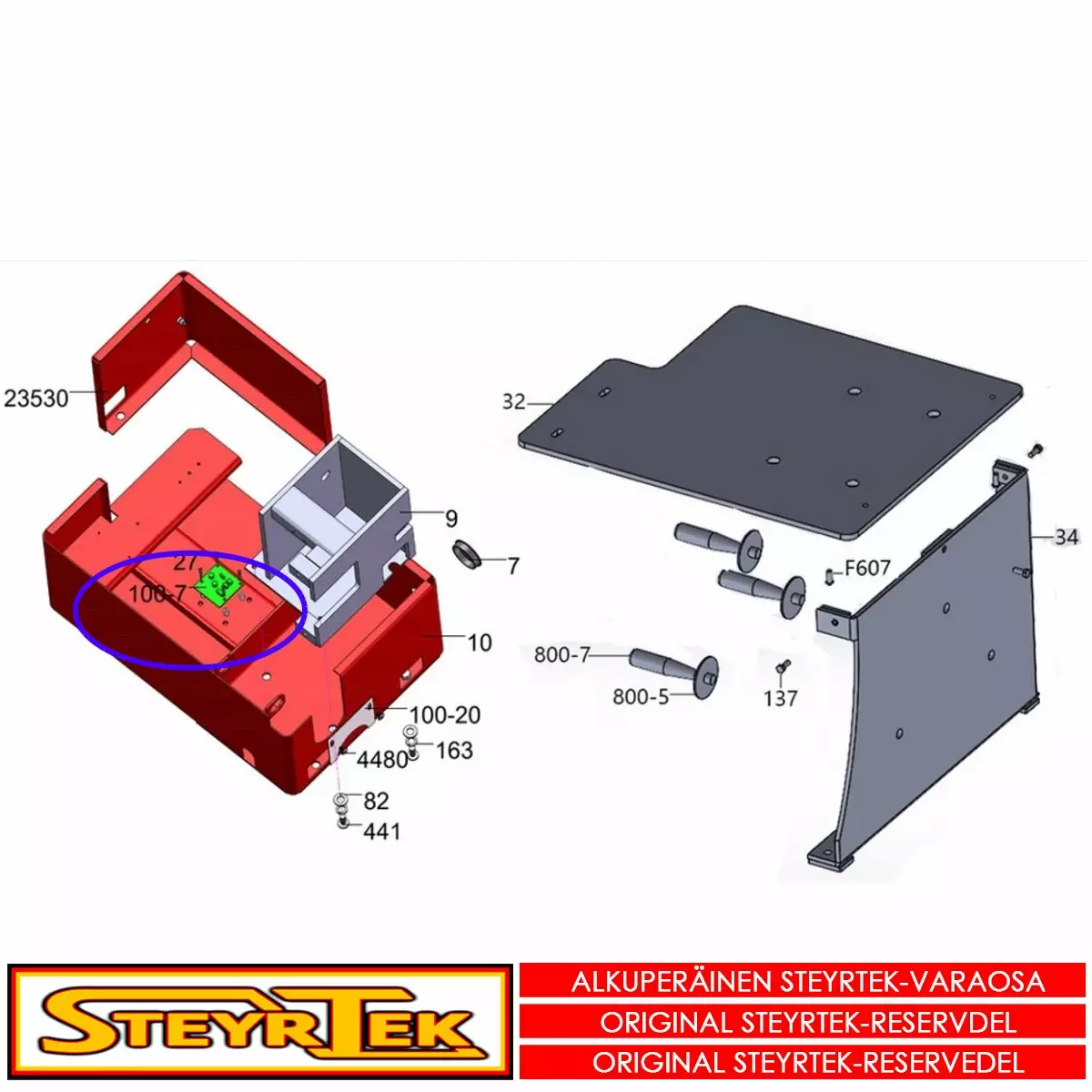 Tämä osa käy valitsemaanne koneeseen. Sama osa käy useaan SteyrTek koneeseen, joten räjäytyskuva ei välttämättä ole samasta koneesta.