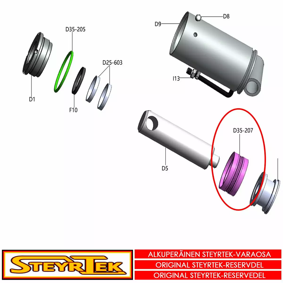 Tämä osa käy valitsemaanne koneeseen. Sama osa käy useaan SteyrTek koneeseen, joten räjäytyskuva ei välttämättä ole samasta koneesta.