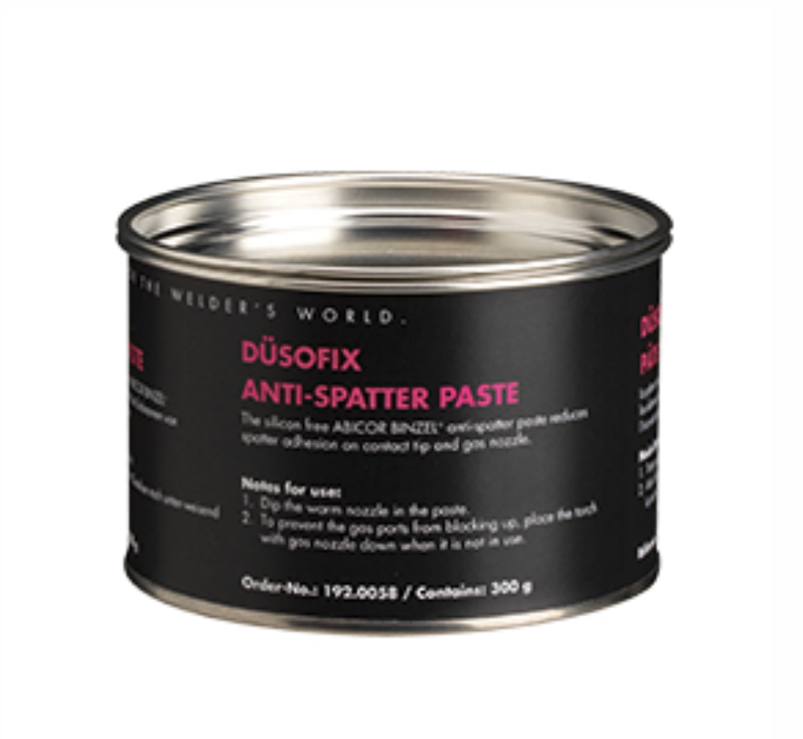 Tahnamainen roiskesuoja-aine kaasusuuttimille. Biologisesti hajoavaa, ei sisällä vaarallisia aineita, ei sisällä silikonia. Metallipurkin ansiosta kaasusuuttimen voi välittömästi kastaa Düsofixiin – jopa heti hitsauksen jälkeen. Suojaavan kalvon ansiosta roiskeenmuodostus vähenee huomattavasti.