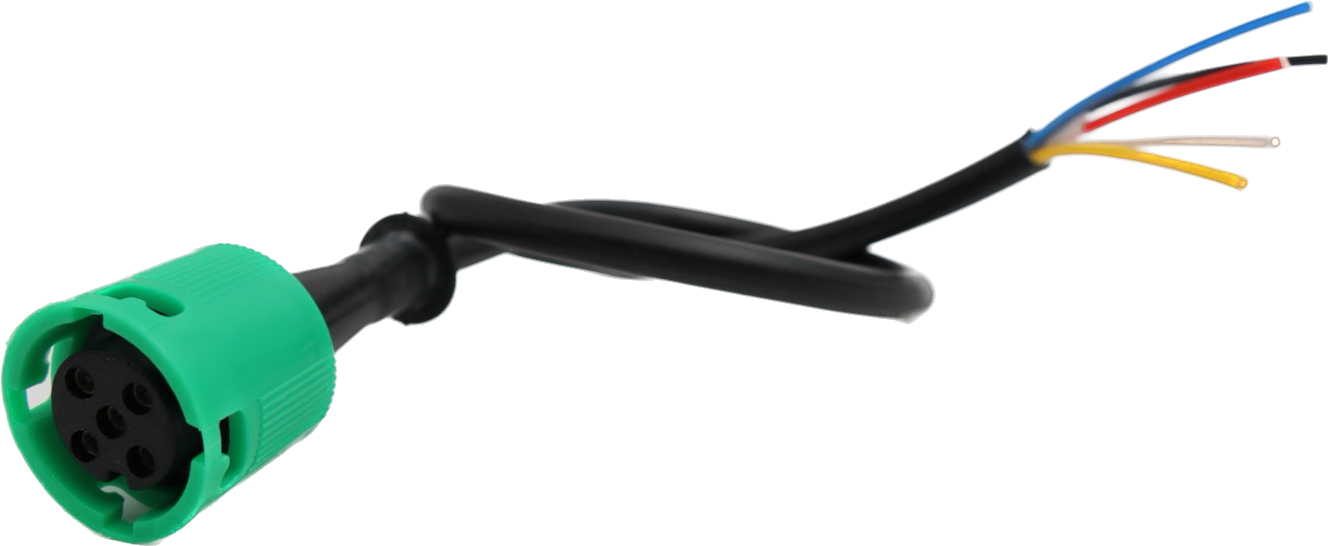 Jokon 5-napainen Bajonet liitin johdolla. Vasemman puolen johtojen väreillä. Jokon, Hella, Aspöck, Sim, Fristom yhdistelmätakavaloihin joissa 5-napainen Bajonet liitäntä.
