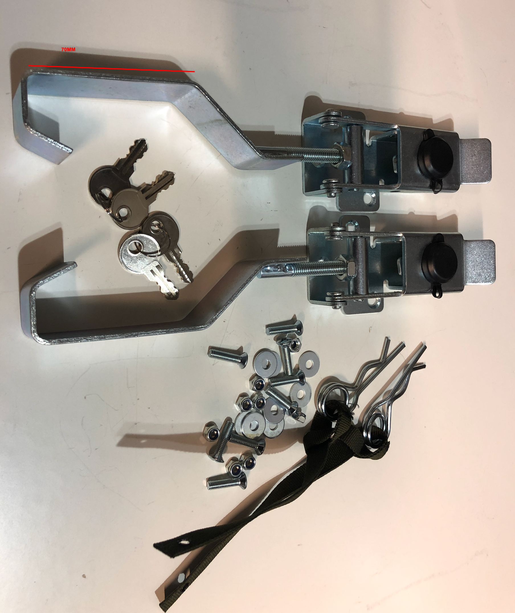 Jaxal kuomun salvat Lukolla ja sokilla 70mm 2 kpl. Jaxalin alkuperäisosia. Sisältää ruuvit, mutterit, sokat Sama salpa kuin ensiasennuksessa jos on ollut lukollinen salpa. Vanhemmassa lukottomassa... Lue lisää