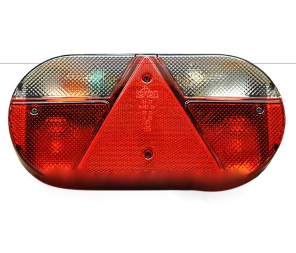 Jokon 610 yhdistelmätakavalo 6-napaisella pikaliittimellä, ulko halkasija 21mm lampussa. Käytössä mm. Majava perävaunuissa.