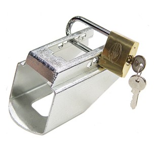 Kytkinlukko lukolla. Voidaan lukita myös vaunu autoon. Sopii max. n. 2000kg kantavuudelta olevaan vetokitaan varkaussuojaksi. Vetokidan maksimi leveys 95mm. Sis. riippilukko.