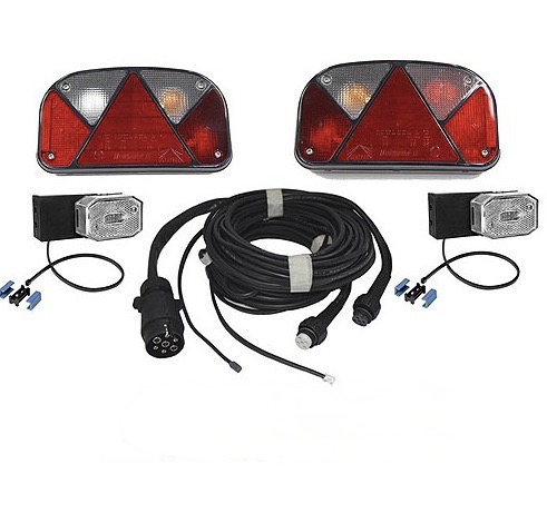 Laadukas Aspöck 12V valosarja perävaunuihin. Helppo ja nopea asentaa. Johtosarjan pääjohdon pituus 6m ( 15580 )ja äärivalojohdot 2x4m. Etuäärivalojen ( 15000 ) liittäminen sarjaan on helppoa DC pikaliittimien avulla. Asentamiseen tarvitset vain pihdit joilla liittää johdot toisiinsa DC-liittimen avulla. Etuvaloista voi ottaa jalat pois niin sopii suoraan pintaan asennukseen, Pistoke (7-nap.) on valmiiksi asennettu johtosarjaan. Lamput sis. polttimot ( 15018 ja 15019 ) Rekisterikilvenvalot Takavalojen sivuissa, kilpi kun jää valojen väliin riittää tai toisenkin takavalon valo riittää. Etuäärivaloissa joustava kumialusta.