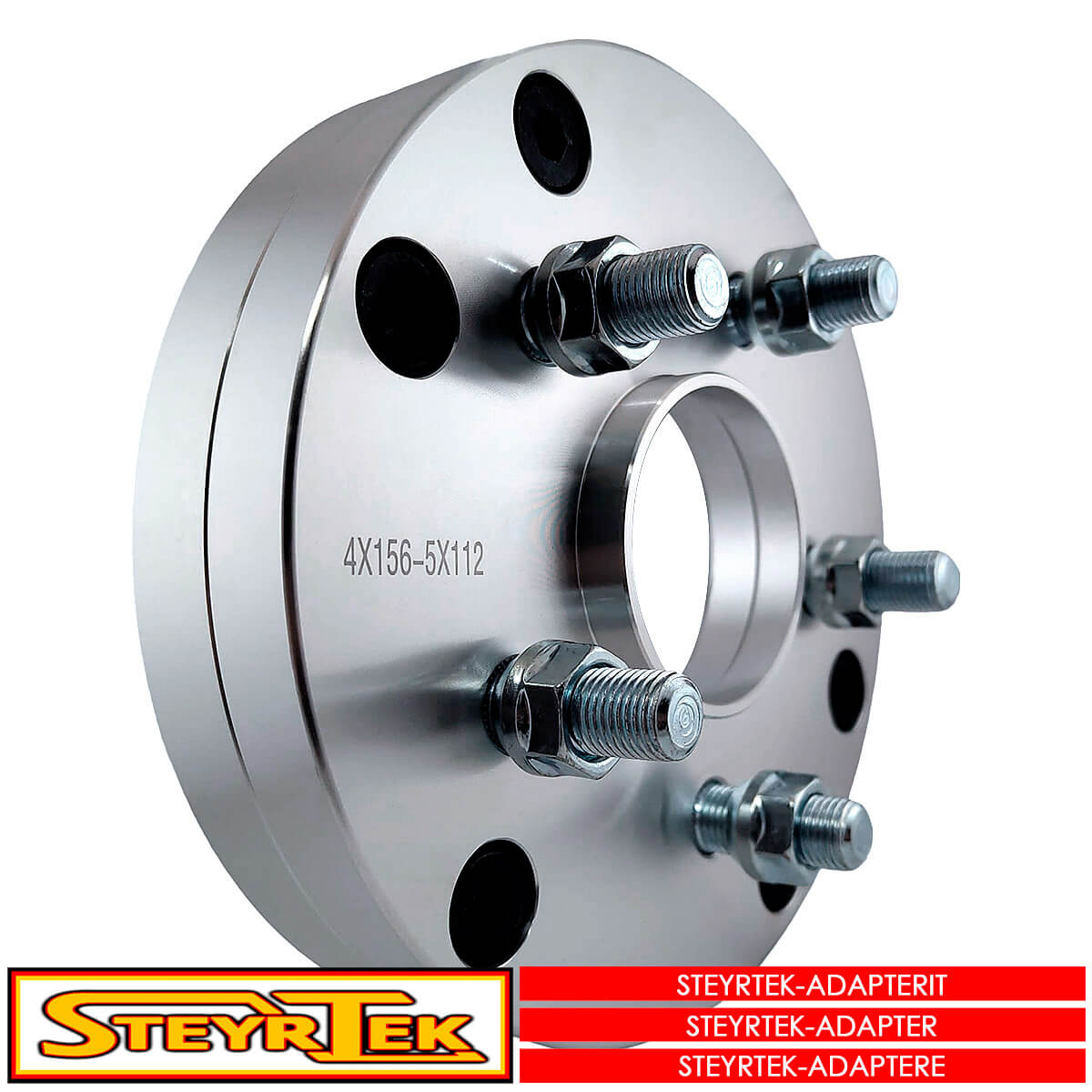 Tällä adapterilla sovitat 5x112 jaolla olevat vanteet 4x156 jaolla olevaan mönkijään. Samalla tuot vannetta 51mm ulospäin eli pienennät ET:tä. Huippuluokan alumiinia SteyrTekiltä.